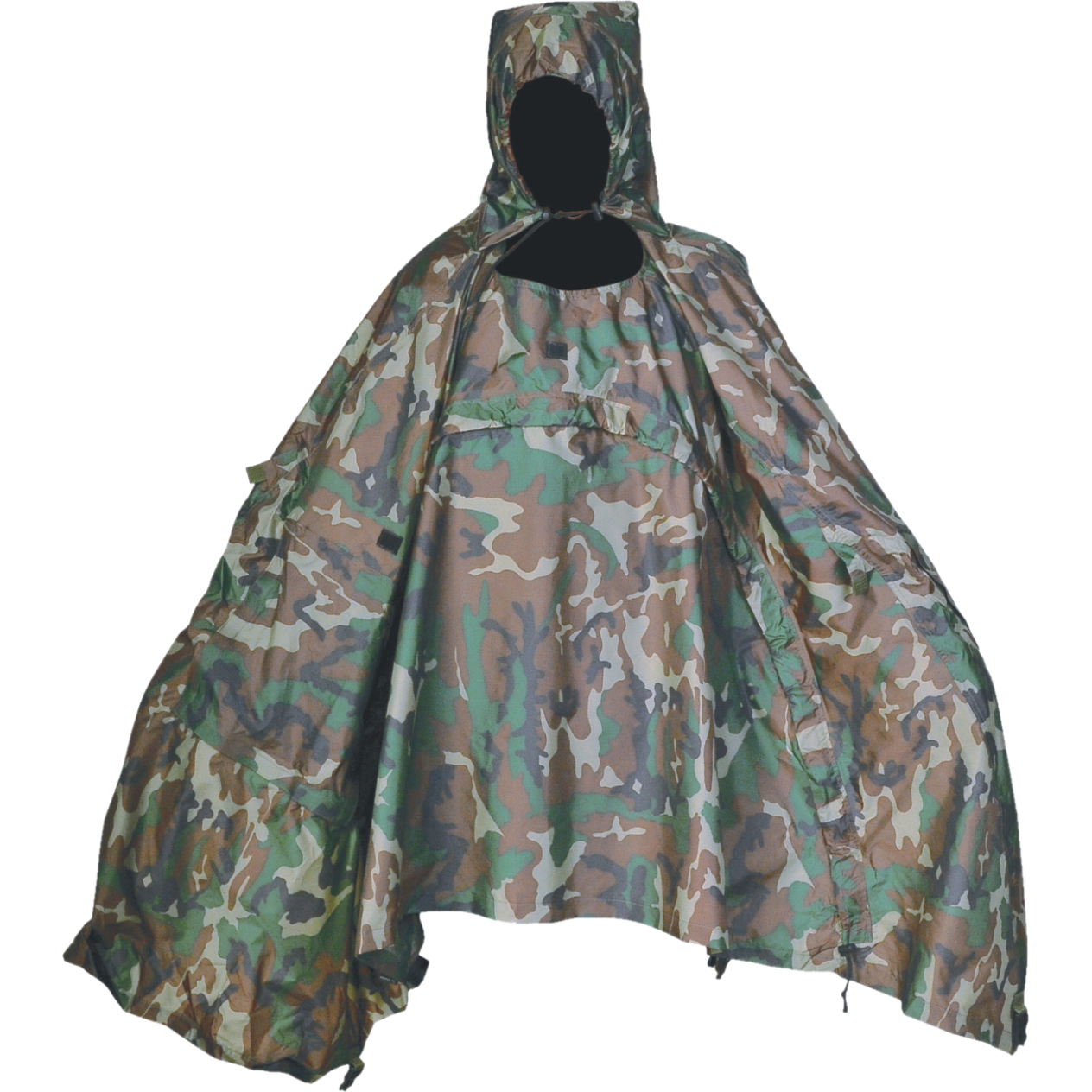 Camo ripstop PU coated multi-function tent & poncho,with mesh layer inside. Versatile and efficient! Rain poncho that converts into fully functional tent including window and zip out entrance.